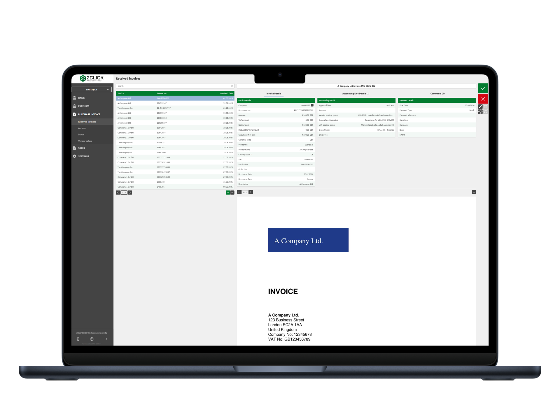 AI scans every invoice, captures line details automatically and remembers account postings.